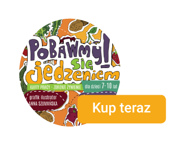 Przyda się każdemu rodzicowi! W środku znajdziesz wydrukowane 42 karty pracy, które uczą, bawią i zachęcają do sięgania po urozmaicony asortyment zdrowych produktów.