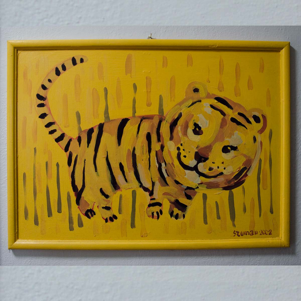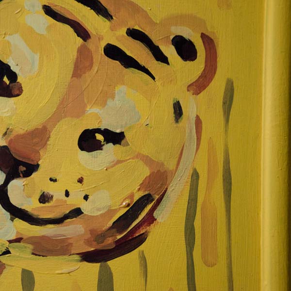 „Tygrysek” obraz, farby akrylowe na płycie pilśniowej, zalakierowany, format pracy wraz z integralną ramką 47x63cm.